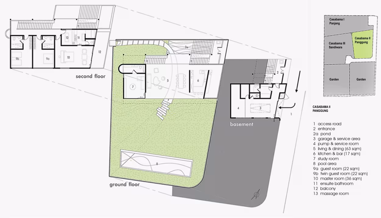 Inspired by traditional Balinese Village clusters, the villa boasts elements derived from local architecture combined with original modern design, great style and detailed attention to comfort Villa Casabama II Panggung is fully self contained with private entrance, own grounds, garage and pool – yet has easy access to the neighbouring villas via a common gate should the need arise. A well-equipped gym / yoga room at the front of the property is shared by the three villas in the complex, while between the villas and the ocean lies a beautiful, grassy, coconut grove - perfect for romantic weddings and events!