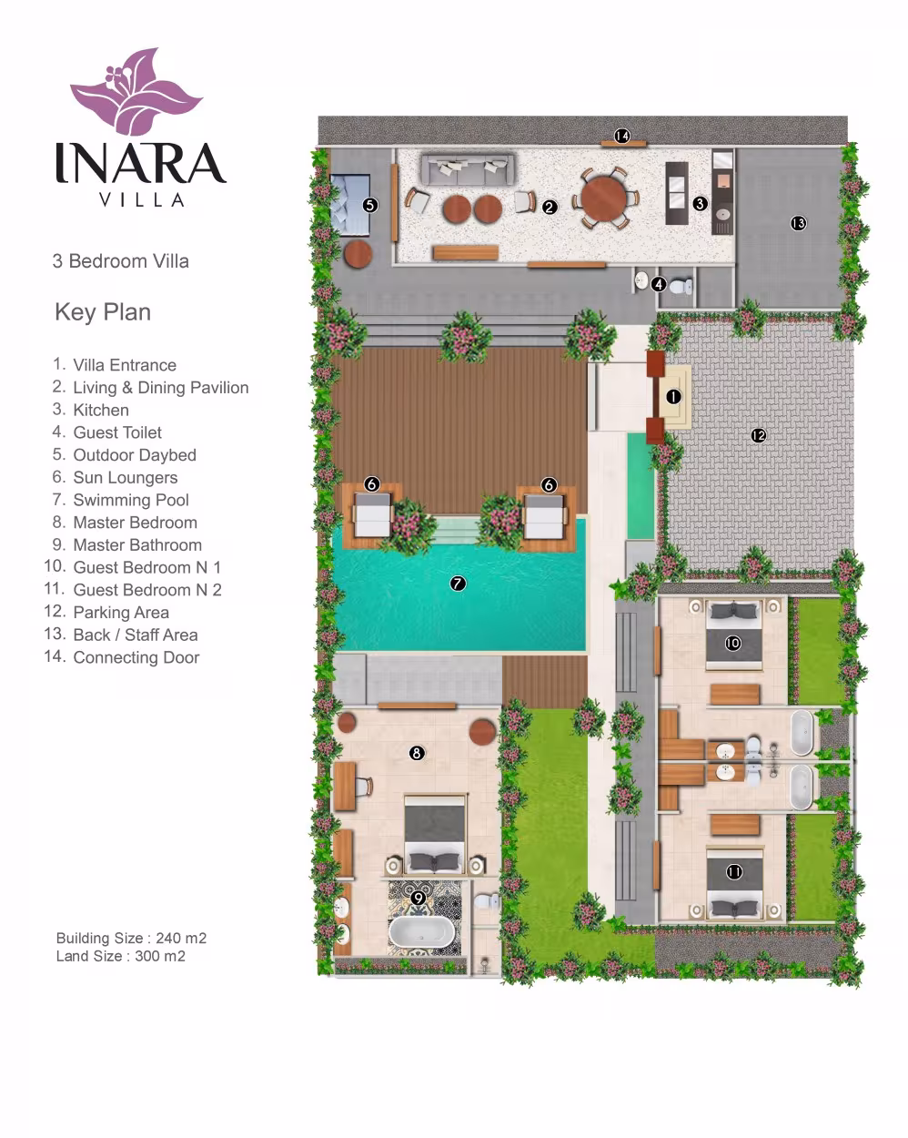 Your first sight of Villa Inara in real life is unforgettable, when the wooden doors swing open to reveal your very own slice of paradise for the coming days and nights. The gentle sound of the lotus pond meets your ears and draws your eyes from the villa entrance to the swimming pool to the bedrooms and the main living and dining pavilion.