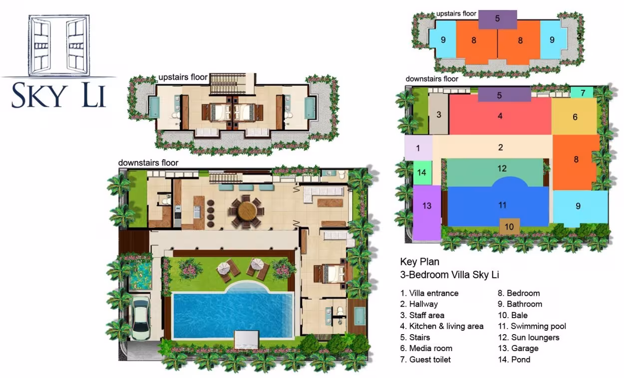 Villa Sky Li is a vibrantly and stylishly decorated 3-bedroom rental villa. Villa Sky is located at the heart of buzzing Seminyak in the secure & exclusive Laksmana estate, within walking distance of many of Bali’s best restaurants, cafes, shops and bars.